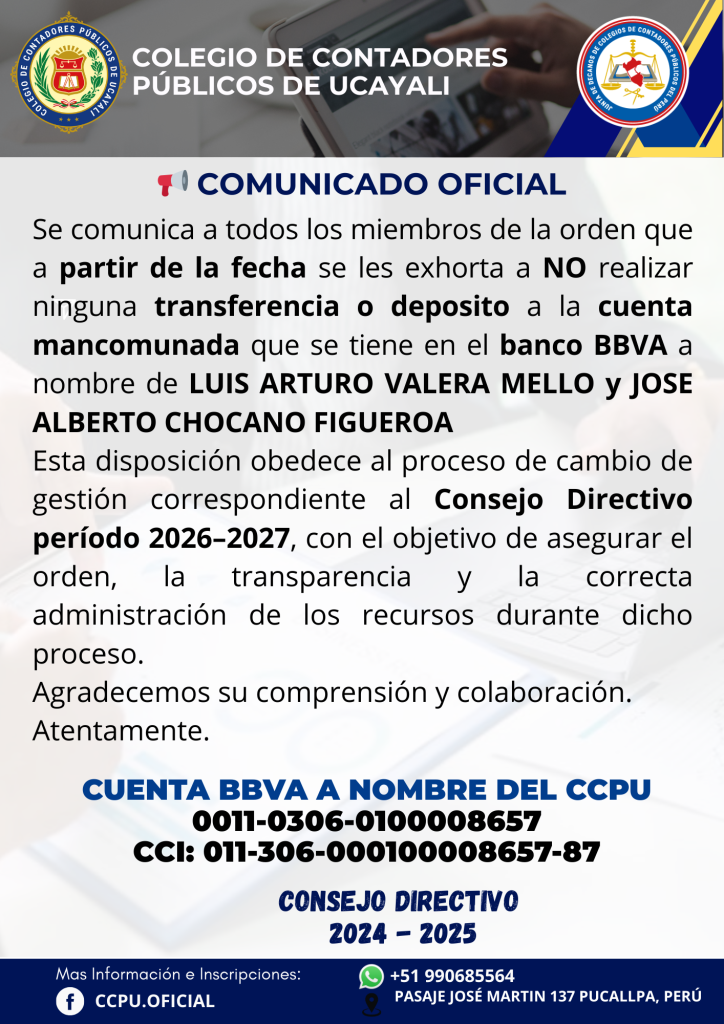 👤 Titular: Colegio de Contadores Públicos de Ucayali (CCPU)