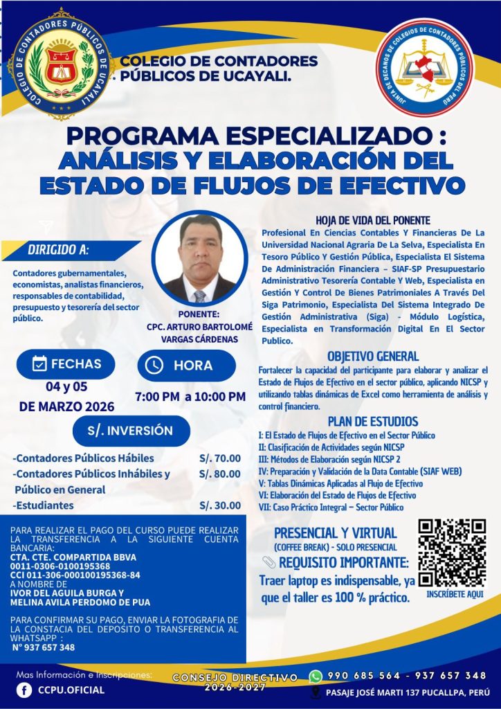 CCPU > documentos y proyectos > PROGRAMA ESPECIALIZADO: ANÁLISIS Y ELABORACIÓN DEL ESTADO DE FLUJOS DE EFECTIVO
